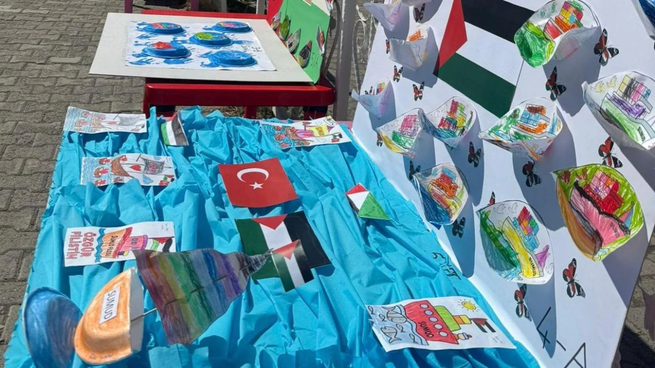 Okul yönetimi yaptığı açıklamada şu ifadelere yer verdi: “Filistin davasına gönülden destek vermek amacıyla minik öğrencilerimizle birlikte SUMUD Filosu sergimizi açtık. Amacımız, çocuklarımız aracılığıyla velilerimize ve halkımıza barış ve özgürlük için farkındalık oluşturmaktır. Her bir öğrencimizin sevgisini, umudunu ve dayanışma duygusunu bu sergiye yansıttık.”