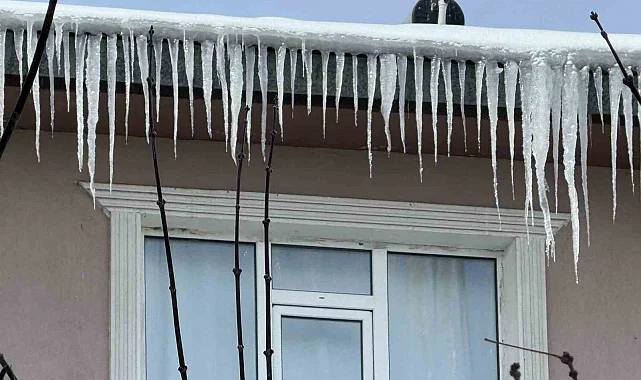 Dondurucu havanın hakim olduğu Ağrı'da ağaçlar ve bitkiler kırağı tuttu, evlerin çatılarında metrelerce buz sarkıtları oluştu.