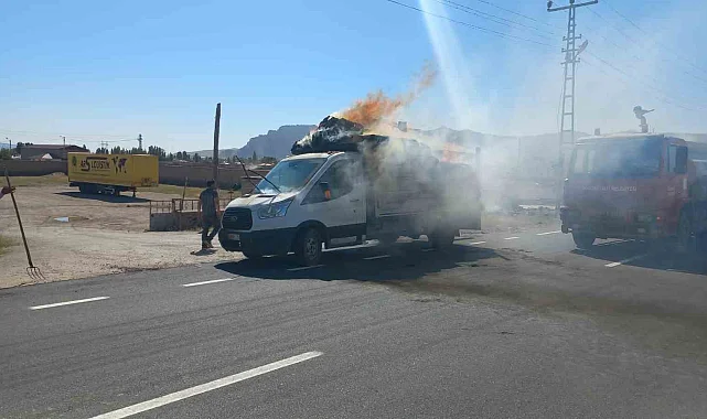 Edinilen bilgilere göre, Ağrı'nın Doğubayazıt ilçesinde seyir halinde olan saman yüklü bir aracın içinde bulunan samanlar bilinmeyen bir nedenden dolayı alev aldı. İhbar üzerine kısa sürede olay yerine gelen Doğubayazıt Belediyesi'ne bağlı itfaiye ekipleri yangını uzun uğraşlar sonucunda kontrol altına aldı. Yangında samanlar küle dönerken araçta maddi hasar meydana geldi.