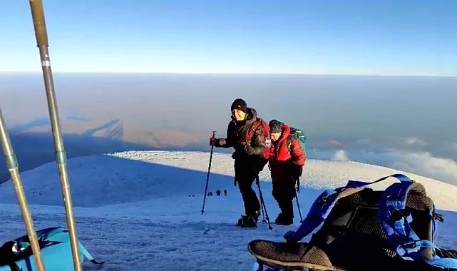 Tırmanış rehberi eşliğinde 3 bin 200'e tırmanan dağcılar, burada konakladıktan sonra 4 bin 200 rakıma çıkarak mola verdi. Gece yeniden tırmanışa geçen dağcılar, sis ve fırtına eşliğinde 6 saat sonra Ağrı Dağı'nın zirvesine çıkabildi.