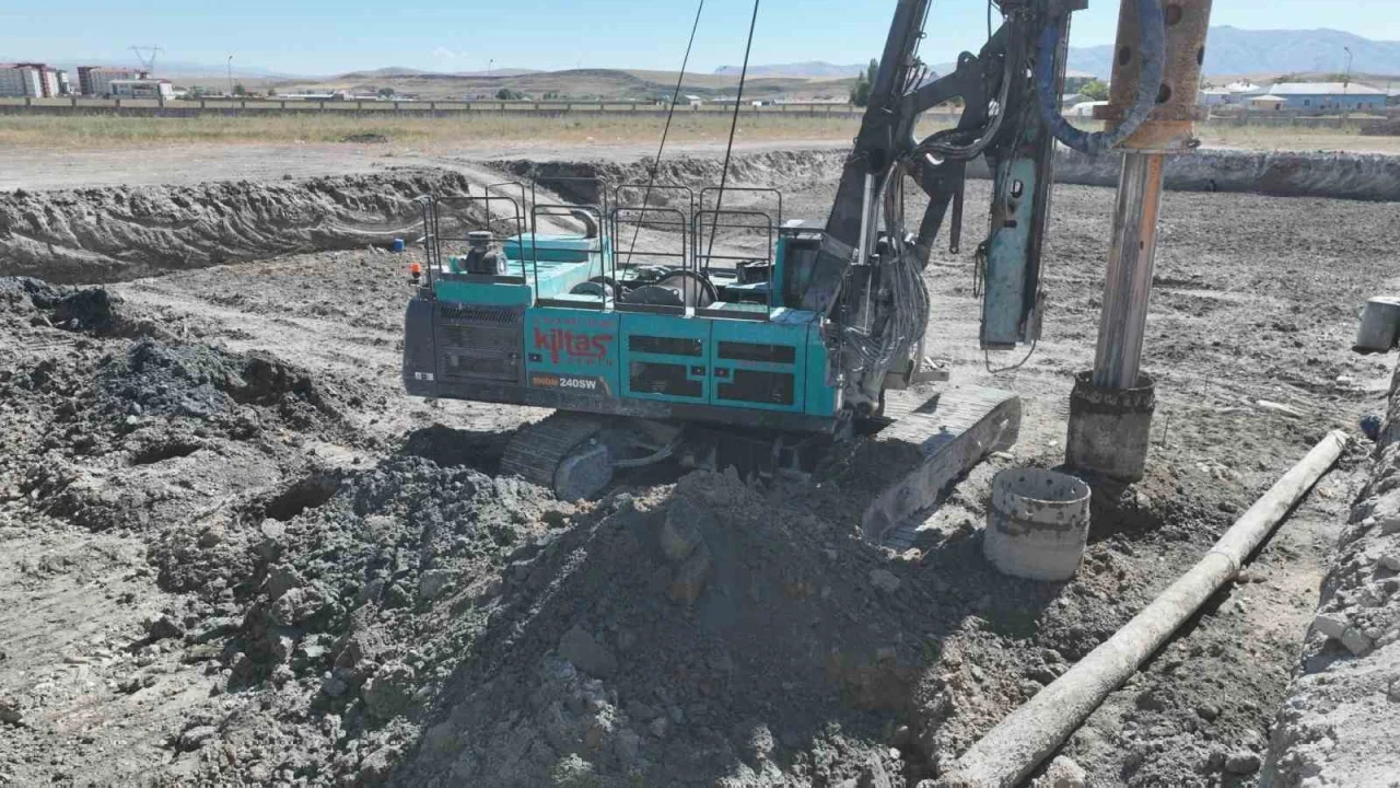 Ağrı İl Özel İdaresi tarafından yapımına başlanan yeni hizmet binasında temel kazısı tamamlanırken, zemin iyileştirme çalışmaları fore kazık uygulamasıyla sürüyor.