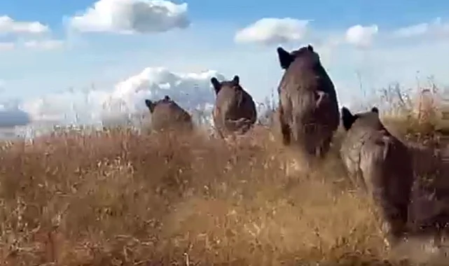Bitlis'in Ahlat ilçesine inen domuz sürüsü cep telefonuyla kaydedildi.