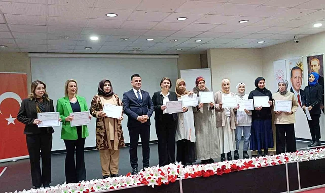 Konuşmaların ardından eğitime katılan kursiyerlere ASH İl Müdürü Aykut tarafından katılım belgesi verildi.