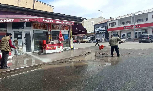 Akyaka'da belediye ekipleri, baharın gelmesiyle birlikte cadde ve kaldırımlarda temizlik çalışmalarına başladı.