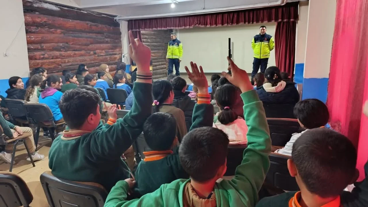 Akyaka İlçe Jandarma Komutanlığı Trafik Timleri, İncedere Köyü Şehit Şeref Demir İlkokulu öğrencileriyle bir araya gelerek, trafik kuralları, emniyet kemeri kullanımı, yaya güvenliği ve bisiklet sürerken dikkat edilmesi gereken kurallar hakkında bilgilendirme yaptı.