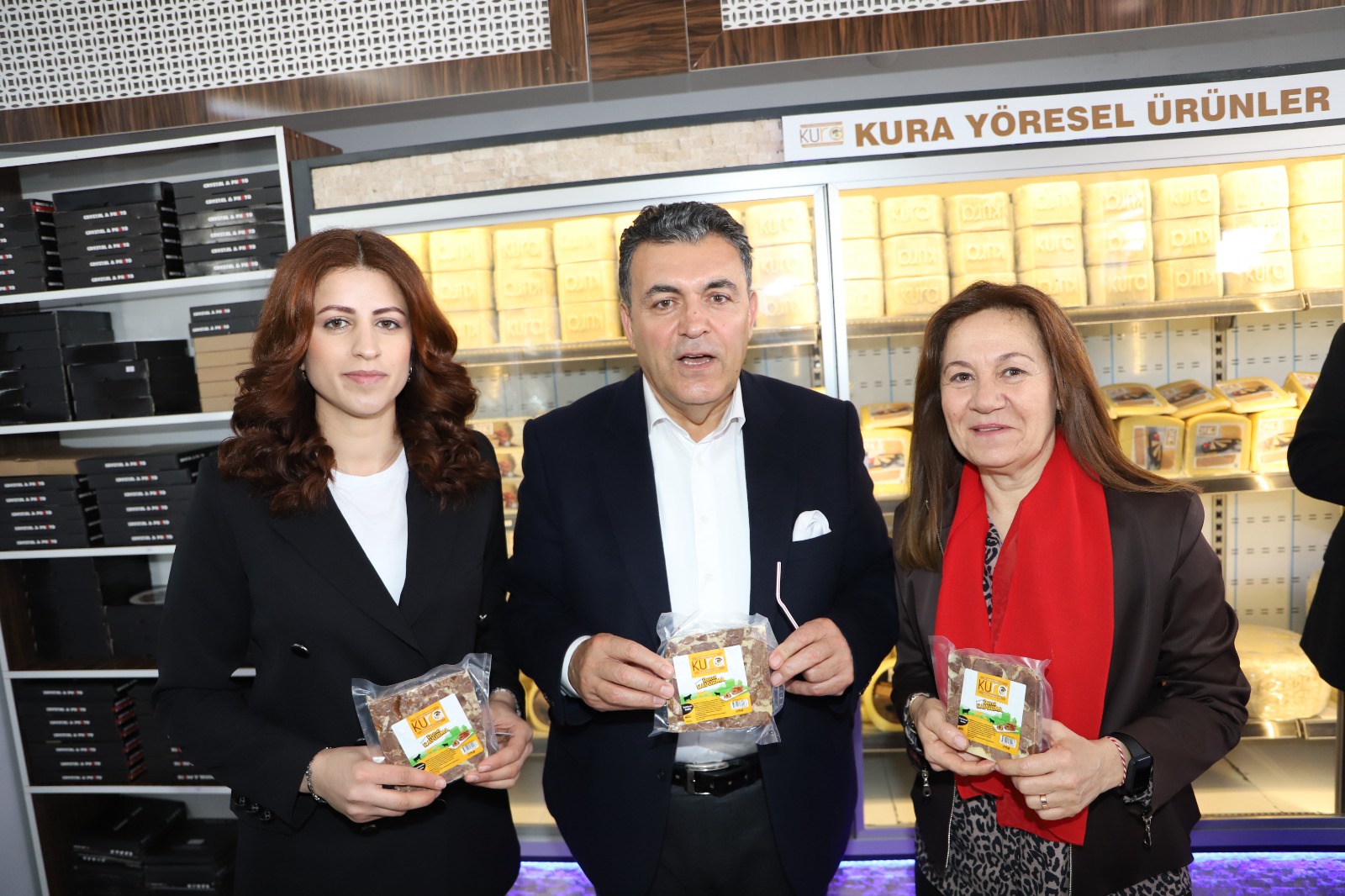 Açılış kurdelesinin kesilmesinin ardından davetlilere satış mağazasını gezdiren Başkan Demir, ürünler hakkında bilgiler verdi.