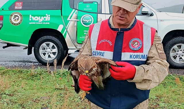 Çıldır ilçesinde devriye görevi yapan İl Jandarma Komutanlığı Asayiş Şube Müdürlüğüne bağlı Çevre, Doğa ve Hayvanları Koruma Timi (HAYDİ), yaralı ve bitkin bulduğu kızıl şahini koruma altına aldı.