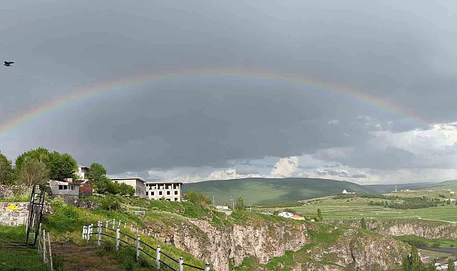 Ardahan'da sabah saatlerinde sağanak sonrası oluşan gökkuşağı görsel şölen oluşturdu. Yağış sonrası tarihi kalenin üzerinde oluşan gökkuşağı, Türk bayrağıyla da bütünleşince doyumsuz bir manzara sundu. Kentin her yerinden gözlemlenen gökkuşağını vatandaşlar cep telefonlarıyla görüntüledi.