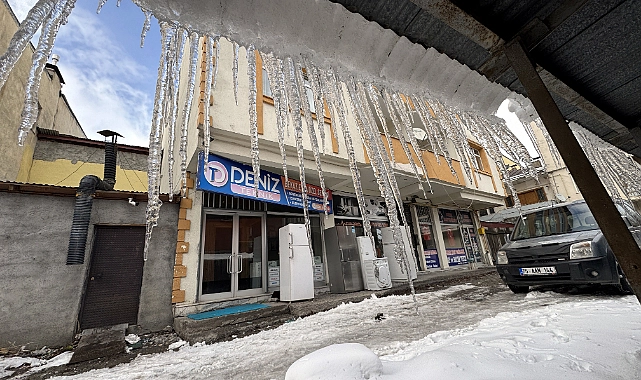 Termometrelerin gece eksi 20 dereceyi gösterdiği ilçede, çatılarda uzun buz sarkıtları oluştu, yol ve kaldırımlar buzla kaplandı.