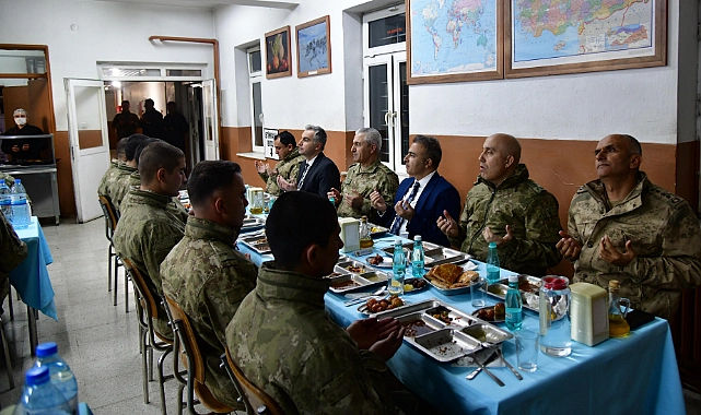 Ardahan Valisi Hayrettin Çiçek, Gürcistan sınırında nöbet tutan askerlerle iftarda bir araya geldi.