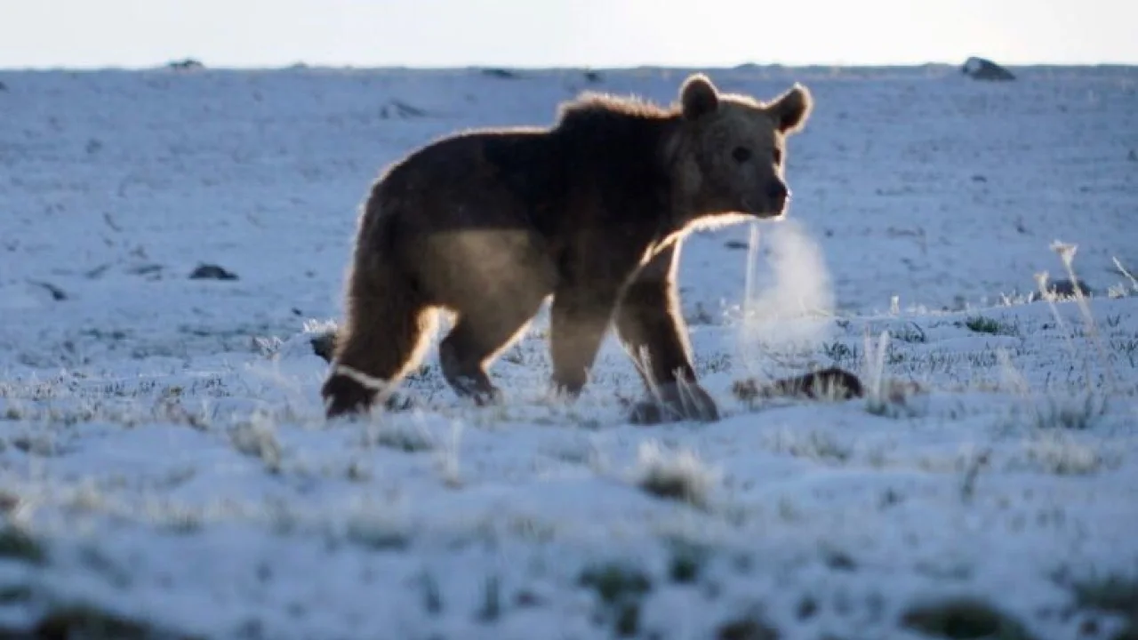 Damal-Posof-Türkgözü yolu üzerindeki 2550 rakımlı Ilgar Dağı geçidinde ortaya çıkan boz ayı, Karip Cankan tarafından görüntülendi.