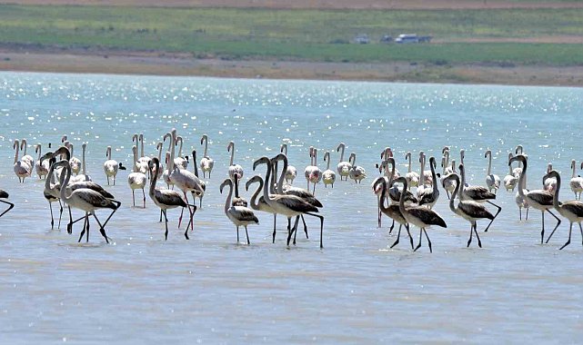 Her yıl İran'ın Urmiye Gölü'nden gelerek Arin Gölü'nde konaklayan flamingolar, görüntüleriyle hayran bırakıyor. Van'ın Erçek Gölü'nde ve Bitlis'in Adilcevaz ilçesinde bulunan Arin Gölü'nde yoğun bir şekilde görünen flamingoları görüntülemek isteyen fotoğrafçılar bölgeye akın ediyor.