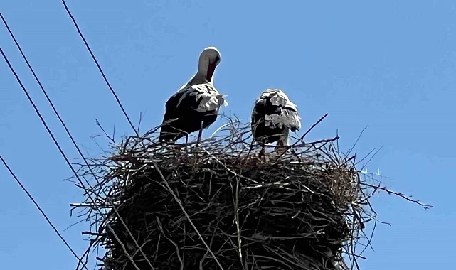 Kars'ın Arpaçay ilçesi Tepecik köyüne her yıl gelen farklı leylekler, 70 yıldır aynı yuvayı kullanıyor. Elektrik direği üzerinde kurulan yuva, köye ilk gelen leyleklere ev sahipliği yapıyor.