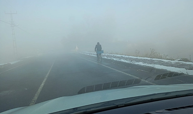 Kars’ın Arpaçay ilçesinde etkili olan sis sürücülere zor anlar yaşattı.