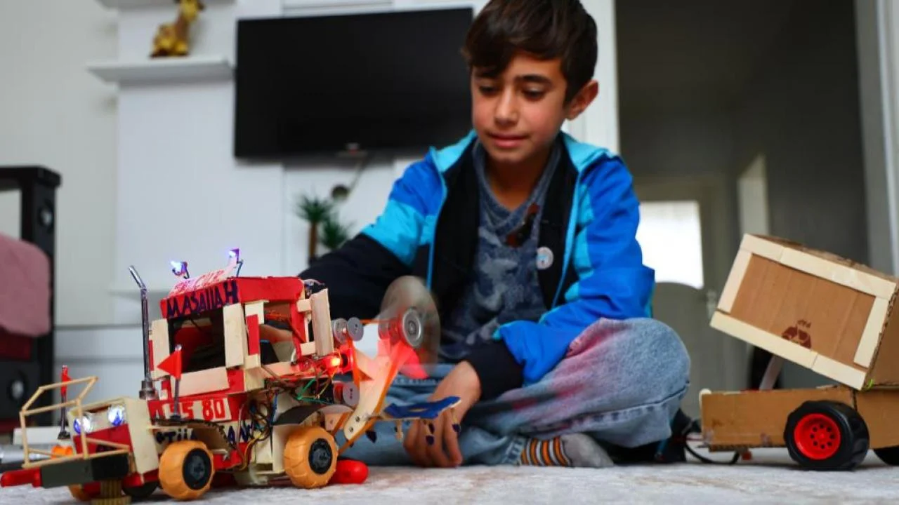 Babam da elektrik işi yapıyordu, ondan gördüm. Yaklaşık dört ay uğraştım. Küçük görünüyor olabilir ama benim için çok zor bir çalışmaydı. Atık malzeme ve bozuk oyuncakların içinden çıkanlarla bu traktörü yaptım. Adım, Selçuk. Selçuk Bayraktar'ı izliyorum, takip ediyorum. İnşallah, büyüdüğümde daha büyük icatlar yapabilirim. En büyük amacım, bir gün Selçuk Bayraktar'ın yanına gitmek" dedi.
