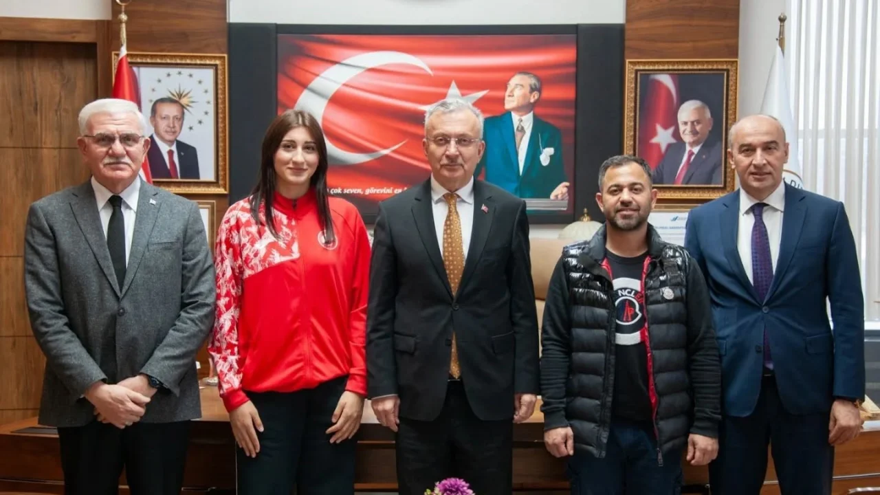 U23 Avrupa Güreş Şampiyonası’nda 76 kilogramda Avrupa şampiyonu olan Erzincan Binali Yıldırım Üniversitesi (BEYÜ) öğrencisi Elmira Yasin, Rektör Prof. Dr. Akın Levent’i ziyaret etti.
