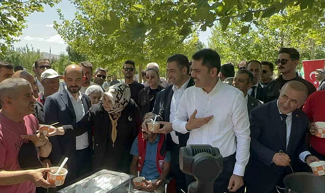 Çevre, Şehircilik ve İklim Değişikliği Bakanı Murat Kurum, Elazığ'da cuma namazı sonrasında vatandaşlara aşure ikram etti.