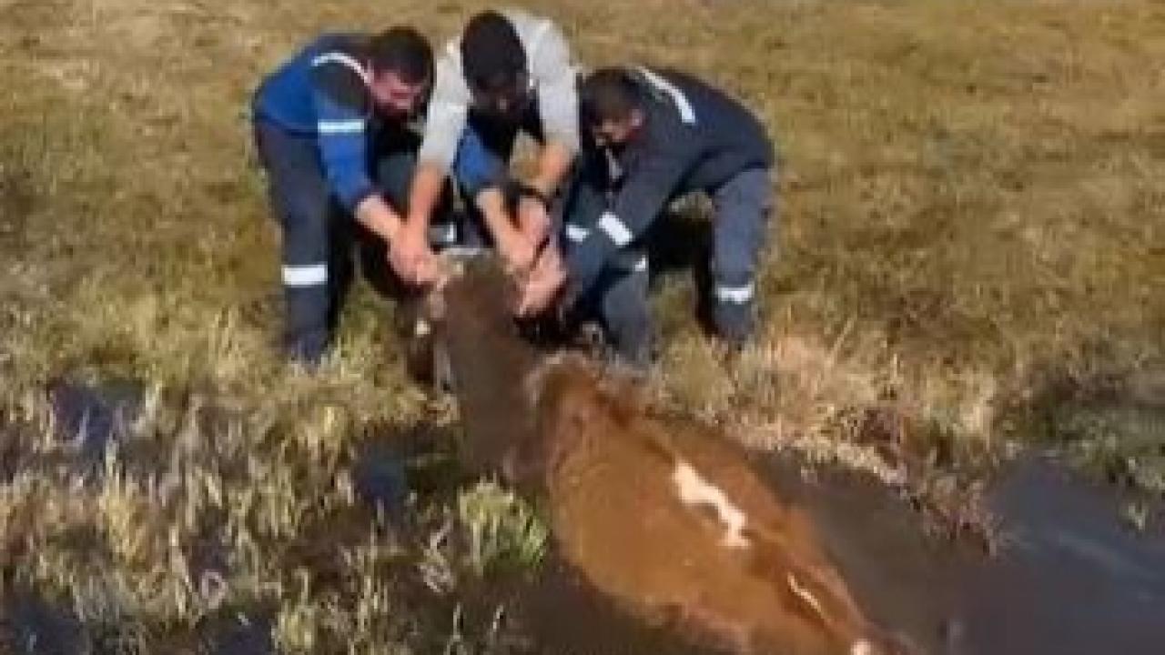 Olay, Ardahan’ın Hanak ilçesine bağlı Ortakent mahallesinde meydana geldi. Edinilen bilgiye göre, büyükbaş hayvan köy merasında otlarken bataklığa saplandı. Bataklığa saplanan inek olduğu yere yığılıp kaldı. Ortakent Mahallesinde arızaya giden Aras Edaş ekipleri arazide çamura saplanmış bir ineği fark etti.