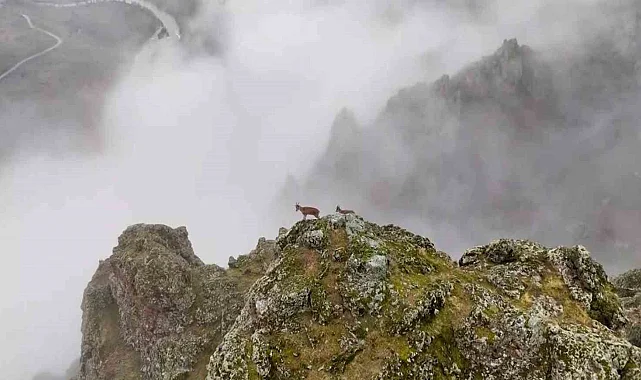Yaban hayatında zengin bir coğrafyaya sahip Erzincan'da sis bulutlarının arkasındaki yüksek kayalıkları mesken tutan dağ keçilerinin görüntüsü mest etti. Belgeselleri aratmayan görüntüler Erzincan'da çekildi.