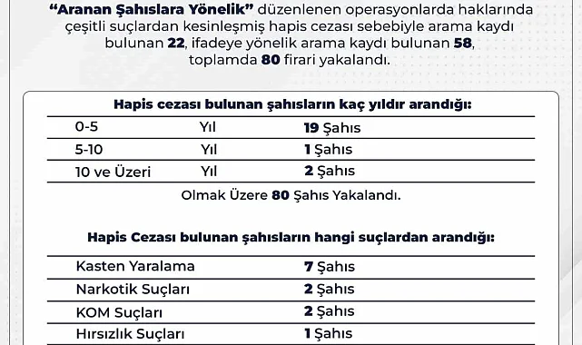 Bingöl'de son iki hafta içerisinde gerçekleştirilen operasyonlarda haklarında kesinleşmiş hapis cezası ile ifadeye yönelik arama kaydı bulunan 80 kişi yakalandı.