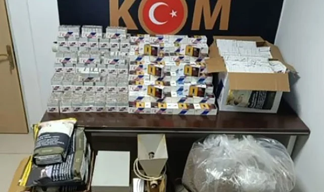 İl Emniyet Müdürlüğü'nden yapılan duyuruda, "Kaçakçılık ve Organize Suçlarla Mücadele Şube Müdürlüğü ekiplerinin yaptığı çalışmalar neticesinde 1 adet sigara dolum makinesi, 39 bin 600 dal içi boş bandrolsüz makaron, 43 bin 200 dal içi doldurulmuş makaron, 35 kilo açık kıyılmış tütün ele geçirilmiştir. Şahsa karşı 5607 SKM suçundan adli tahkikat başlatılmıştır" denildi.