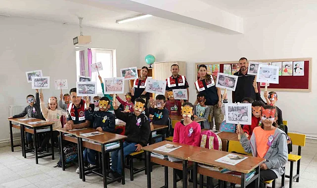 Bingöl'de jandarma personeli, Ekinyolu Köprübaşı İlkokulundaki öğrencilere hayvan sevgisini anlatıp çeşitli hediyeler verdi.