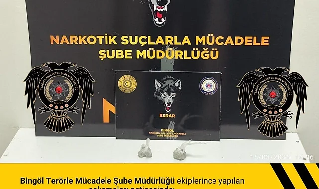 Bingöl Emniyet Müdürlüğü'nden yapılan açıklamada, "Bingöl Terörle Mücadele Şube Müdürlüğü ekiplerince yapılan çalışmaları neticesinde; 3,91 gram esrar maddesi ele geçirilmiştir. Şüpheli 1 şahıs Narkotik Suçlarla Mücadele Şube Müdürlüğüne teslim edilmiş olup, şahıs hakkında adli işlem başlatılmıştır" denildi.