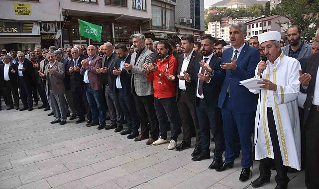 Bitlis'te Cuma namazı çıkışı İsrail saldırılarında hayatını kaybeden Filistinliler için gıyabi cenaze namazı kılınarak dua edildi.
