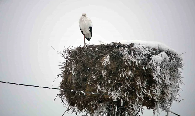 Bitlis'in Güroymak ilçesine bağlı Budaklı köyünde bulunan leylek, havaların soğumasına rağmen göç etmiyor.