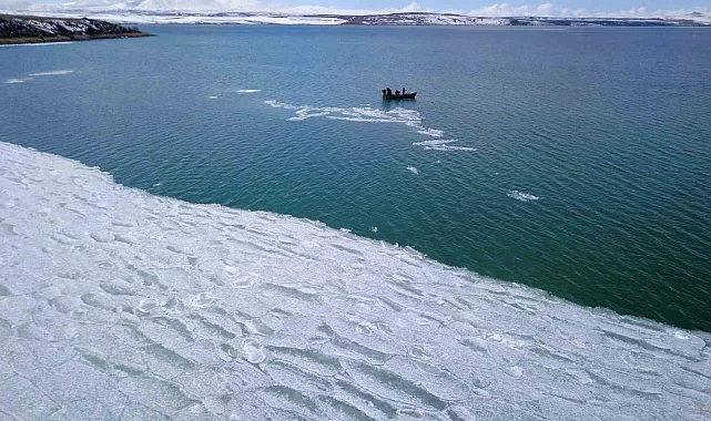 Kış mevsiminde şiddetli soğuk nedeniyle yüzeyi buz tutan Bitlis'in Ahlat ilçesindeki Nazik Gölü'nün çözülmesi ortaya kartpostallık görüntüler çıkardı.