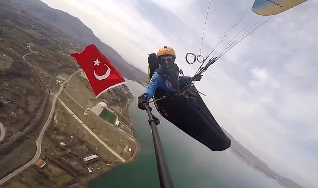 Çanakkale Zaferinin yıl dönümünü, gökyüzünde paraşütle uçarak kutladı