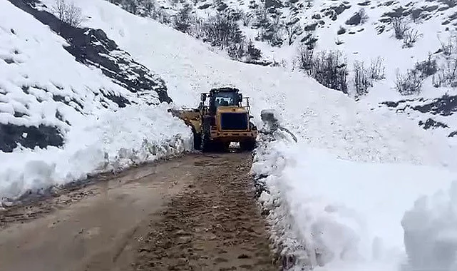 Kar kalınlığının yer yer 5 metreyi bulduğu yolu açan ekipler, bölgede genişletme çalışmalarına devam ediyor.