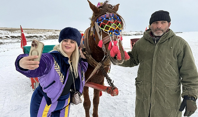 Arkadaşlarıyla İzmir'den gelen Candan Kaygusuz da Çıldır Gölü'nün atlı kızak ve buz üstünde gezinti keyfinin tarifi mümkün olmadığını söyledi.