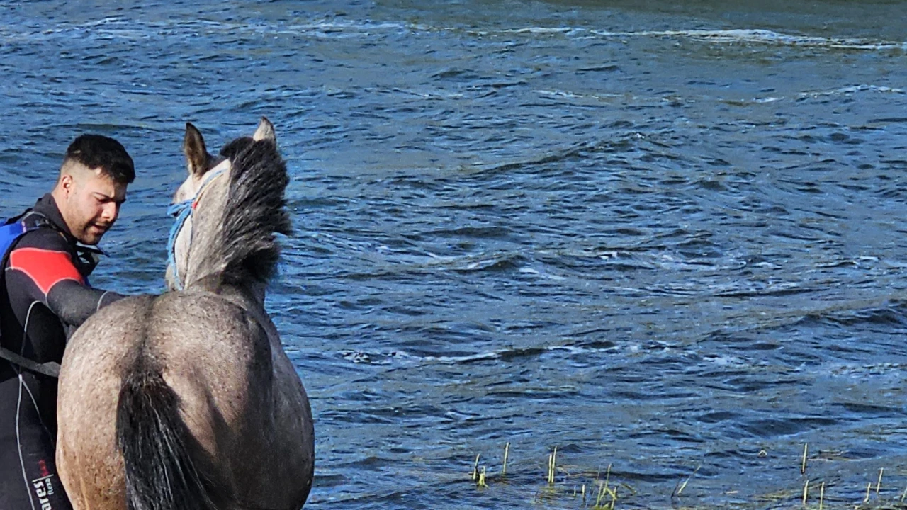 Ardahan'da, Çıldır Gölü'ndeki adacıkta mahsur kalan at, Afet ve Acil Durum Müdürlüğü (AFAD) ekiplerince kurtarıldı.