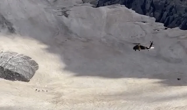 Hakkari'deki Cilo Dağı'nda yer alan buzulların üzerinde yürüyen 4 kişilik bir grubun buzulların kırılması sonucu oluşan çukura düşmesiyle, bölgede hazır bulanan Yüksekova Ekolojik Platformu Dağcılık ve Spor Derneği'nin arama kurtarma ekiplerinin (YEKDASDER) çalışmaları anbean kameraya yansıdı.