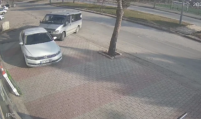 Olay, Kırklar Mahallesi Ali Rıza Septioğlu Bulvarı'nda meydana geldi. Edinilen bilgiye göre 15 yaşındaki sürücünün kullandığı transit, kontrolden çıkarak park halindeki otomobile çarptı. Çarpmanın etkisiyle otomobilin bir kısmı iş yerine girdi. Kazada, iş yerinde ve araçlarda maddi hasar oluşurken yaralanan olmadı. Kaza anı, iş yerinin güvenlik kameralarına yansıdı. İş yerinde bulunan bir kişinin kazayı fark edince son anda kurtulduğu ve panikle kaçtığı görüldü.