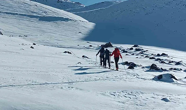 Ağrı Dağı'na tırmanmak için gelen bir grup dağcı, dağın eteklerinde kayak yaparak tırmanışlarına renk kattı.