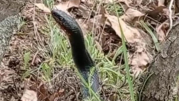 Hakkari'nin Yüksekova ilçesinde nadir görülen bir kara yılan görüntülendi.