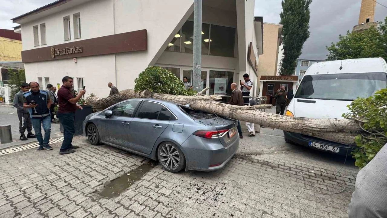 Görgü tanıklarının aktardığına göre, rüzgarın etkisiyle devrilen ağaç, bir otomobilin üzerine düştü. Çevrede kısa süreli panik yaşanırken, şans eseri yaralanan olmadı.
