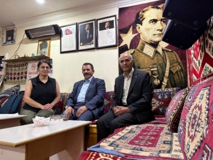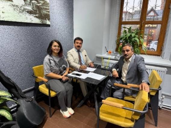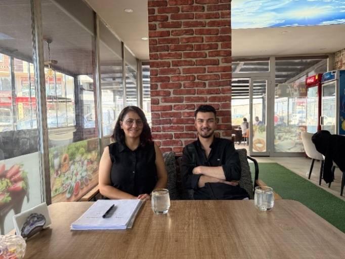 Fotoğraf 9: Araştırma konusu kapsamında mahalli sanatçı Kadir Salduz ile görüşmeanından bir görüntü. Fotoğraf: Doç. Dr. Sibel Polat, Yer: Point Cafe, 23 Ağustos 2025, Kars.