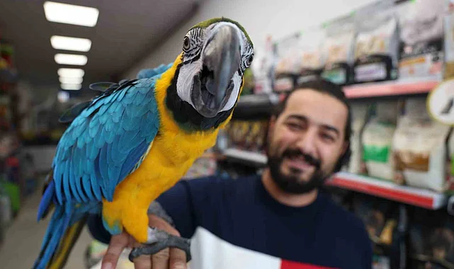 Elazığ'da bir petshop sahibinin getirdiği Macaw türü papağan büyüklüğü, güzelliği ve fiyatı ile dikkat çekiyor. Evcil hayvan ve yem satışı yapan Özkan Polat, başından kuyruğun ucuna kadar 84 santimetre uzunluğunda olup yaklaşık bir kilo ağırlığındaki papağana 'Dayı' ismi koydu. Cinsi, sempatik tavırları ve en havalı papağanlar grubunda yer alması ile 75 bin bin lira değer biçilen 'Dayı', güzelliği ve fiyatıyla müşterilerin ilgisini çekiyor.