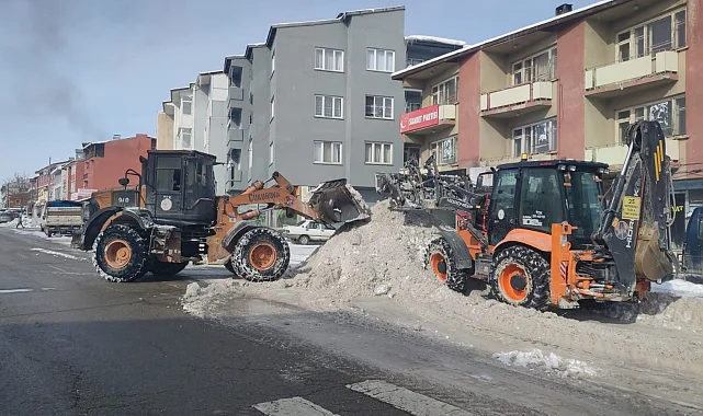 Erzurum'un Aşkale ilçesinde kuvvetli kar yağışı sonrası ekipler sokak ve caddelerde tonlarca karı temizlemeye başladı.