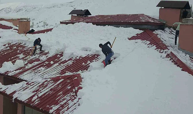 Bitlis'te son zamanlarda çetin geçen kış mevsiminde aile bütçelerine katkı sağlamak isteyen kar temizleyicileri metrelerce yükseklikteki çatılarda biriken karı temizliyorlar.
