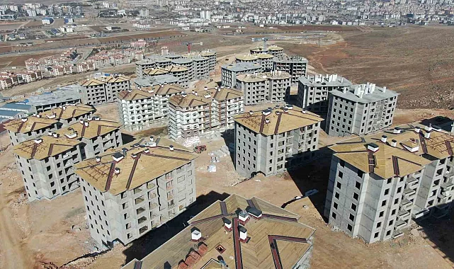 Deprem bölgesi Elazığ'da, rezerv alanı ilan edilen mahallelerde kalıcı konut çalışmaları hız kesmeden sürerken Güneykent Mahallesi'nde yapımına başlanan 608 konutun kaba inşaatı tamamlandı.