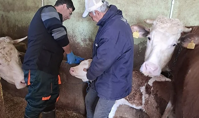 Elazığ'da büyükbaş hayvanlara aşı uygulaması ve küpeleme çalışmasına başlandı.