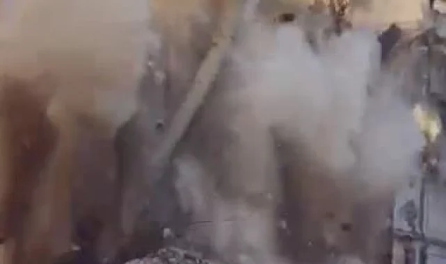 Kahramanmaraş'ta meydana gelen yıkıcı depremlerden etkilenen iller arasından bulunan Elazığ'da ağır hasarlı binaların yıkımı da sürüyor. Bu çerçevede, merkeze bağlı İzzetpaşa ve Nailbey mahallelerinde bulunan binalar iş makinesinin makasını vurmasıyla bir anda yerle bir oldu. Ortalık toz bulutu ile kaplanırken, o anlar cep telefonu kamerasına saniye saniye yansıdı.