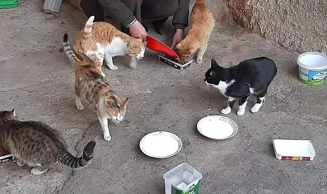 Elazığ'da sokak hayvanlarına sahip çıkan Murat Erişir isimli vatandaş,her sabah kapısının önünde bekleyen kedi ve köpeklerin beslemesini yapıyor.
