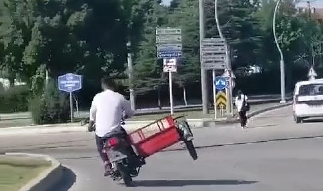 Olay, merkeze bağlı İtfaiye kavşağında meydana geldi. Edinilen bilgiye göre, sepetli motosikleti, trafiği tehlikeye atarak seyir halindeyken sepetin olduğu kısmı kaldırarak ilerlemeye devam etti. O anlar bir başka sürücünün cep telefonu kamerasına yansıdı. Sepetli motosiklet sürücüsü, bir süre sonra gözden kayboldu.