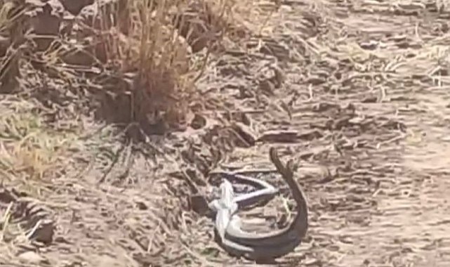 Elazığ'da yaklaşık iki metre uzunluğundaki iki yılanın çiftleşme dansı cep telefonu ile kaydedildi.