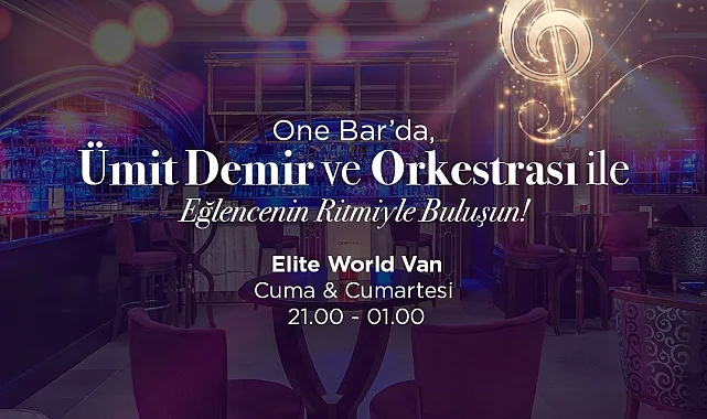 Konuyla ilgili açıklamada bulunan Elite World Van Hotel Genel Müdürü Oktay Aksoy, misafirlerine hizmetin en güzelini sunmak amacıyla haftanın iki günü canlı müzik hizmeti sunduklarını ifade ederek, "Gün boyunca yoğun bir tempo yaşayan misafirlerimizin bu yorgunluklarını atmalarını sağlamak amacıyla One Bar'da canlı müzik ziyafeti sunuyoruz" dedi.